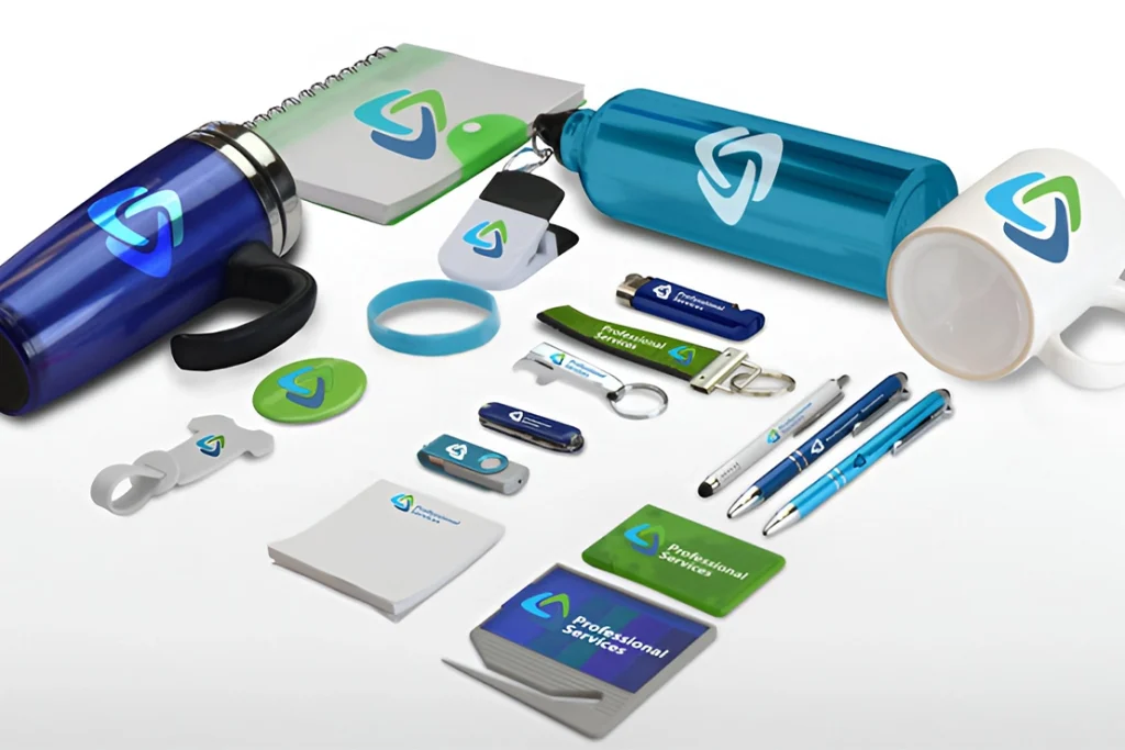 Branded merchandise — mugs, keychains, notebooks, bags, powerbanks, USB drives, and lanyards — to keep your brand in hand at every event and milestone
